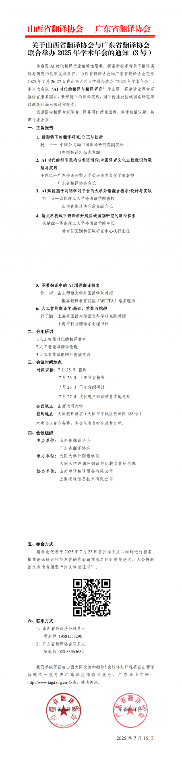 必威西汉姆联将承办晋粤翻译协会2025年学术年会