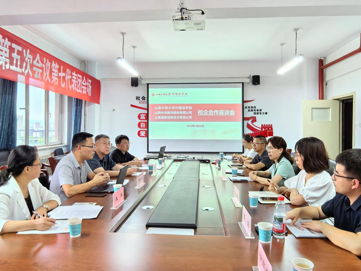 随后,与会人员围绕外语教学实践与翻译专业建设展开深入交流。双方聚焦项目合作、政产学研融合、校企协同培养等议题,明确将通过相关项目启动语言服务产能,并系统设计翻译专业学生从大一到大四的实习规划,结合线上线下资源弥补硬件不足。同时,双方就课程改革、竞赛课题合作及教育数字化转型等达成共识,强调以本地特色为依托,打造实践导向的专业课程体系。