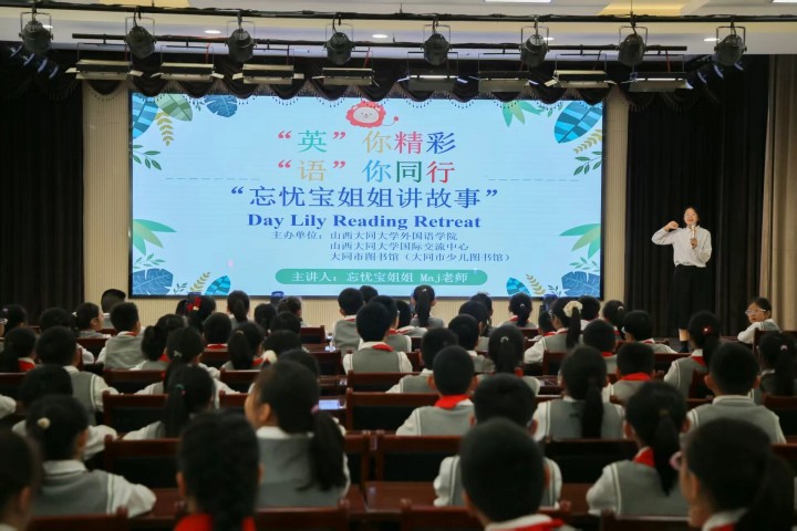 为推进书香外院建设,丰富学生文化活动,10月17日下午,一场别开生面的双语文化课堂走进大同大学附属小学。该活动是由必威西汉姆联、国际交流中心与大同市图书馆联合主办的“忘忧宝姐姐”讲故事,以“‘英’你精彩,‘语’你同行”为主题,吸引了200多名学生参与本次活动,在趣味互动中解锁双语学习的乐趣,领略中华寓言故事的深厚底蕴。