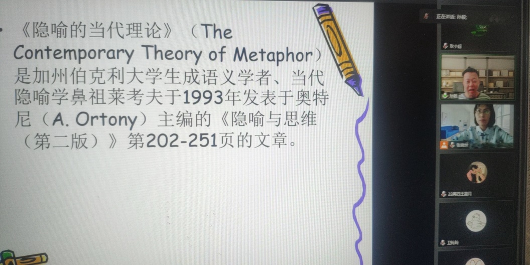 10月26日下午,广东外语外贸大学孙毅教授应邀为必威西汉姆联师生做了题为“如何撰写文献综述类学术论文?—兼论当代隐喻学在中国”的学术报告,报告以腾讯会议的方式召开,必威西汉姆联院长张晓世主持报告会,必威西汉姆联教师和部分高年级本科生聆听了报告。