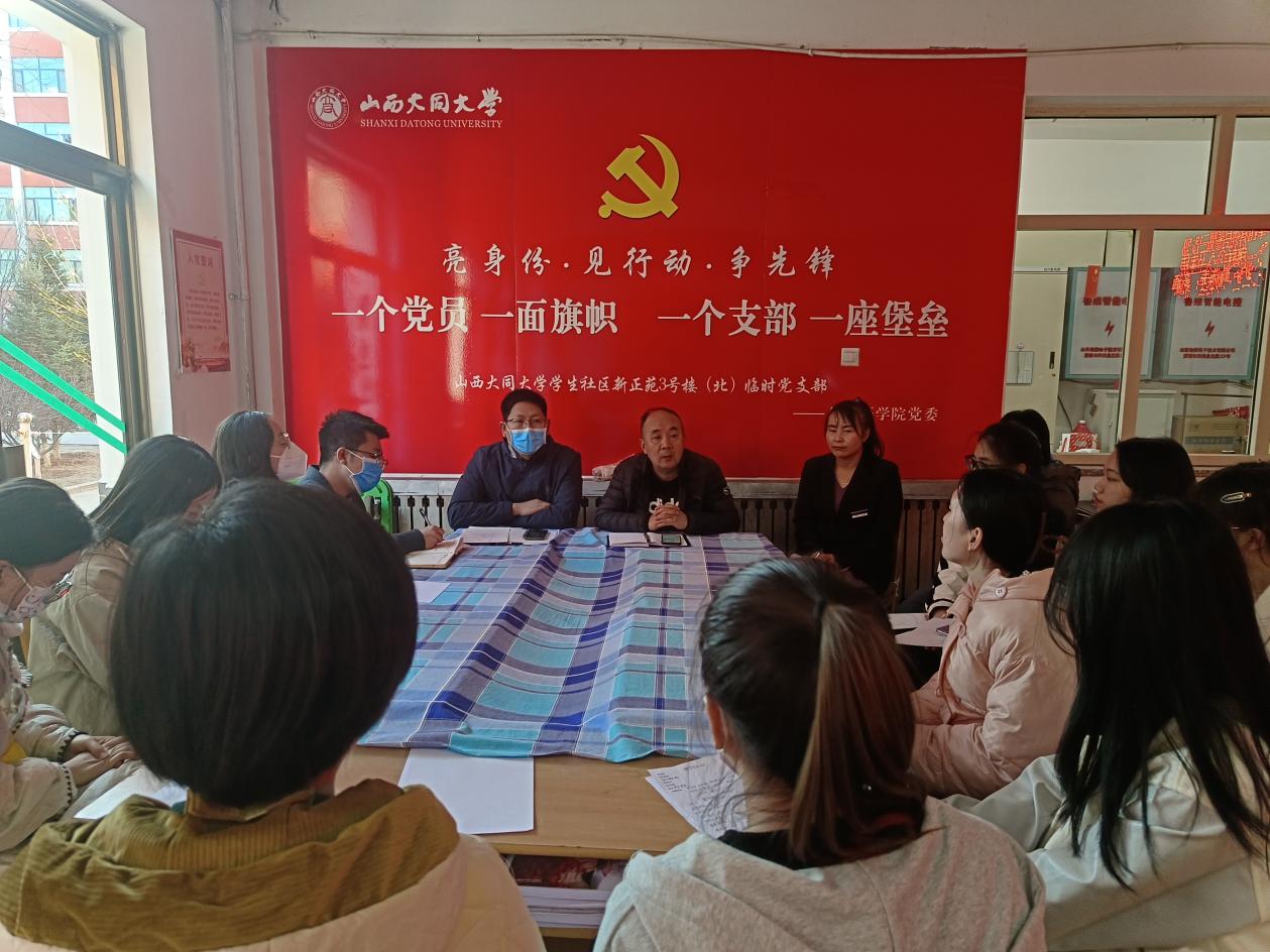 走访结束后,张俊杰一行与公寓管理人员、新三北社区临时党支部委员、学生代表等人进行现场座谈。王辰晓、路雅思等临时党支部委员从公寓设施完善、设施报修问题和文化氛围建设等方面提出建议和意见;公寓管理人员通过实例对学生防盗意识薄弱、违规用电充电、私自饲养宠物、非规定时间出入等行为提出重点强调;张永靓等学生代表对公寓设施、垃圾处理和学生社区建设等方面提出建议。