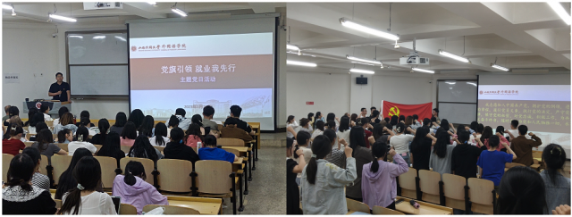 商务英语系党支部书记杨伟祺老师提醒同学们要正确看待自己的能力和就业环境,要勇于尝试,摒弃眼高手低和想要一蹴而就的心态,在社会实践中不断寻找适合自己的职业和发展道路,同时发挥党员的先锋作用,带动周围同学积极就业、主动就业。